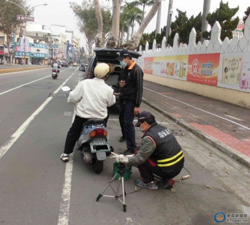 ▲台南市環保局稽查人員,積極進行機車路檢。(圖/環保局提供)