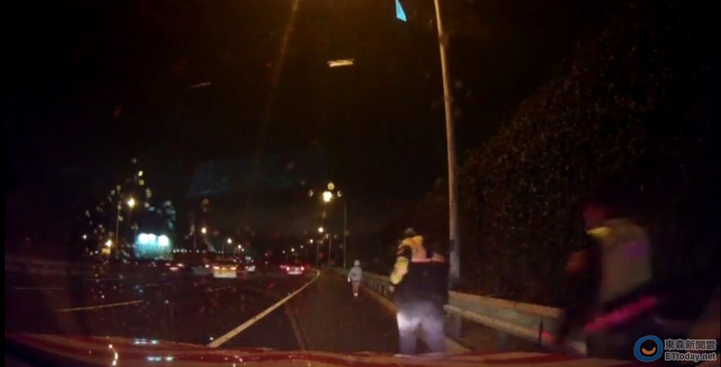 國道警第一大隊表示,1日晚間9時許接獲用路人報案,在國道2號東向6.5公里大竹路段有行人,警立即派巡邏車前往查看,巡邏車於5分鐘內迅速抵達,發現有一名老阿嬤走在外側路肩,身旁車輛呼嘯而過相當危險,時值深夜天氣嚴寒冷風直吹,老阿嬤僅穿著單薄衣物,員警立即下車上前關懷,並引導老阿嬤坐上警車。