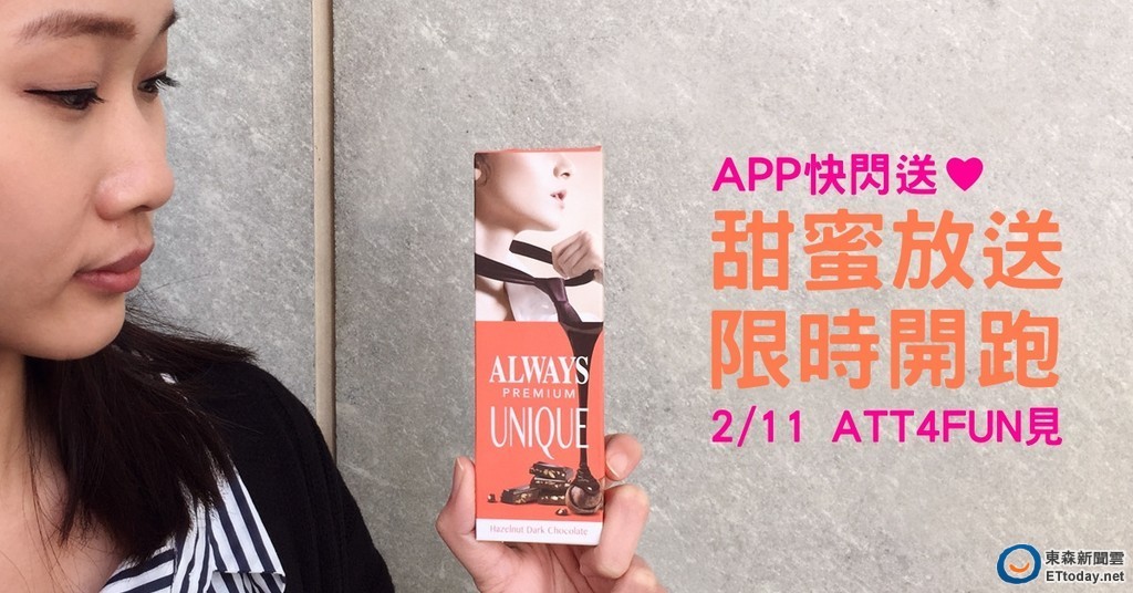 ETtoday東森新聞雲特別選在情人節前的周末2月11號,將會在ATT 4 FUN 舉辦快閃活動!從下午的兩點到下午六點,有空的朋友經過ATT 4 FUN可要注意了,下載東森新聞雲App,就送歐維氏巧克力,小編在這邊悄悄的透露,香濃巧克力搭上堅果,脆脆的口感特好的呢!