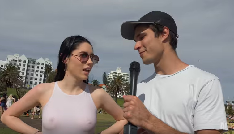 漂亮臉蛋配上火辣身材通常就足以讓整個影片、照片大加分。一位澳洲的Youtuber吉伊(Adrian Gee)日前在一處觀光景點尋找民眾談論「割包皮的陰莖」沒想到卻找到一位超火辣正妹,因為沒有穿著內衣,導致在鏡頭前雙峰激凸若隱若現,讓網友大喊「內容已經不重要了!」
