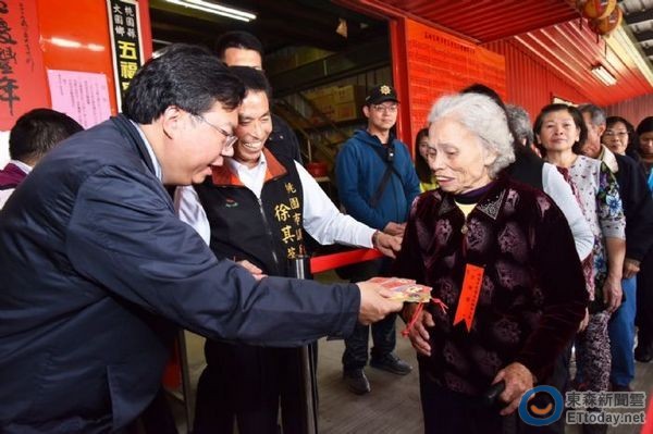 桃園市長鄭文燦4日前往大園區五權五福宮參香,並發送新春福袋給參香市民指出,大園區五權地區居民長壽,長輩特別多,可說是桃園的養生村,市府會積極打造健康樂活園區,落實在地老化的長照政策。