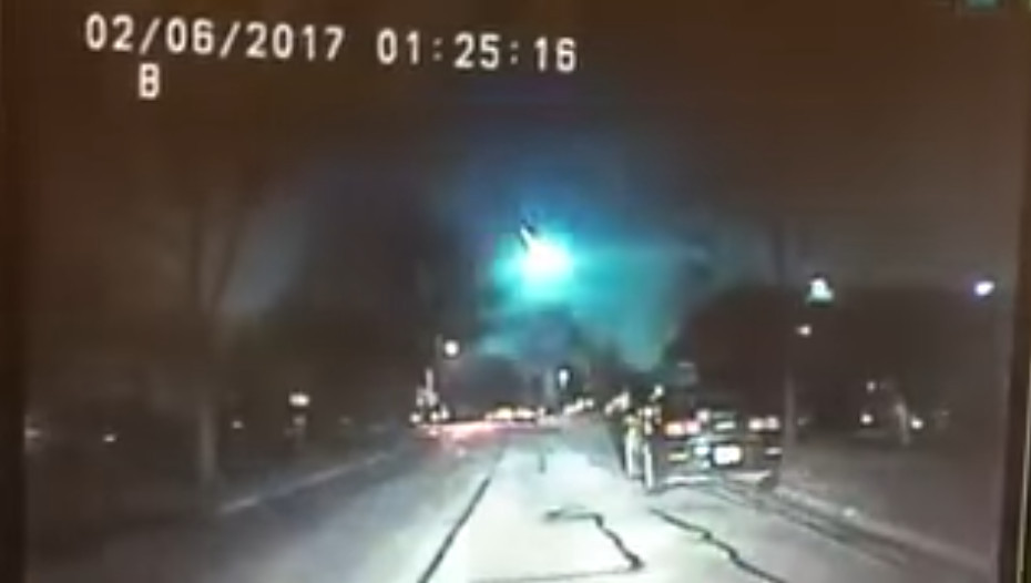 美東時間6日凌晨1時25分在密西根湖上空落下一顆輛藍色大火球,恰好被伊利諾州萊爾(Lisle)的員警戴克斯特(Jim Dexter)用巡邏車上的行車紀錄器拍下流星墜落的樣子。據美國流星協會的營運經理韓基(Mike Hankey)說,它在墜入湖面前還化成許多碎片。