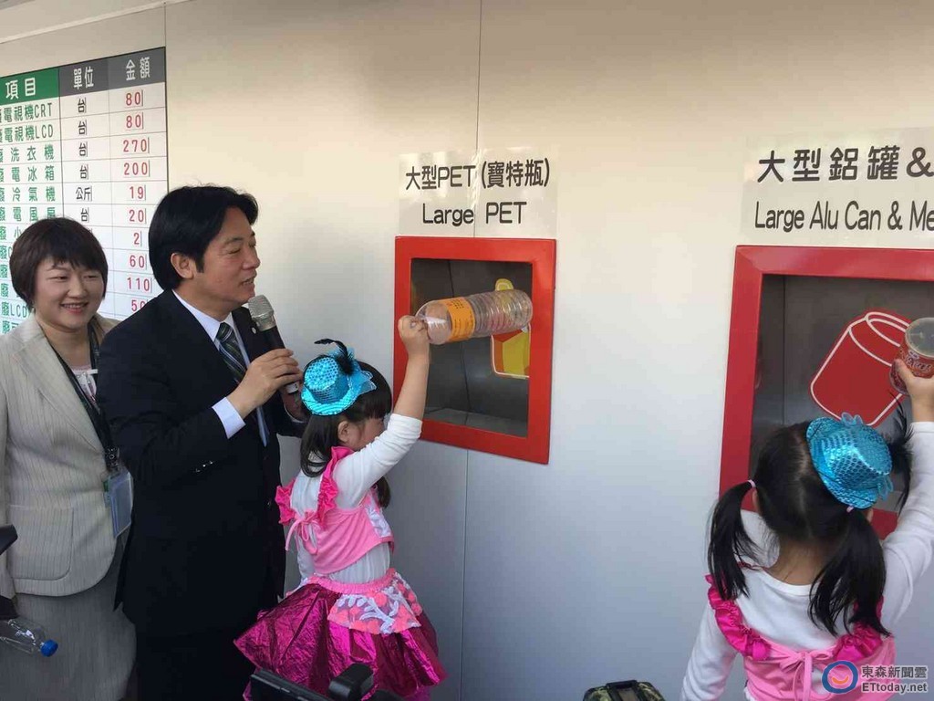 ▲台南市長賴清德鼓勵民眾資源回收做環保。(圖/記者林悅攝)