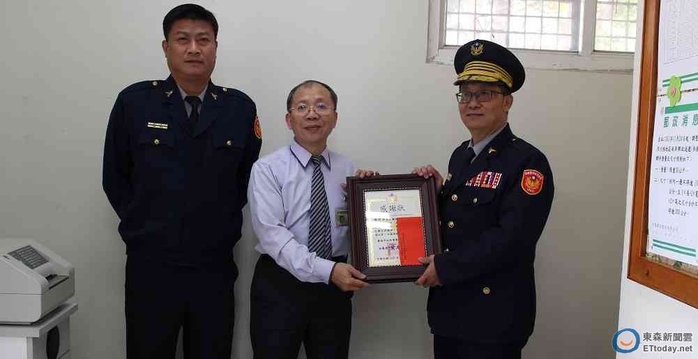 市警五分局長黃光榮,8日上午10親自前往西華郵局,頒發感謝狀及禮券給協助有功之郵局陳姓經理,感謝共同防制詐騙。