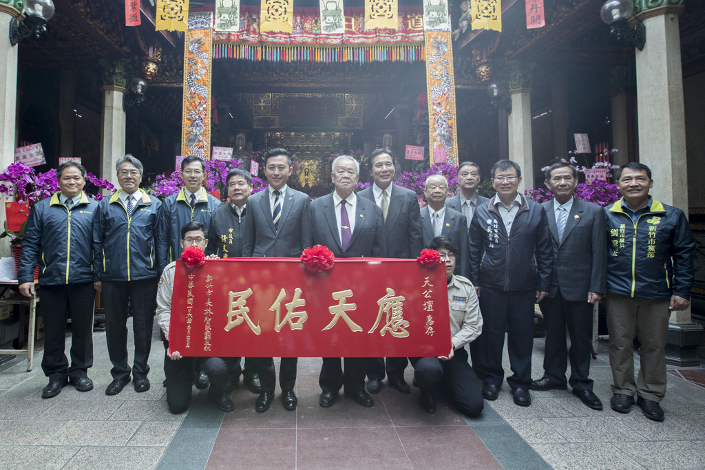 新竹市長林智堅今(8)日上午前往致贈天公壇匾額「應天佑民」,肯定天公壇對地方的貢獻,是溫暖社會的力量,市長林智堅並向天公壇玉皇大帝上香祝禱,祈求保佑風調雨順,國泰民安。