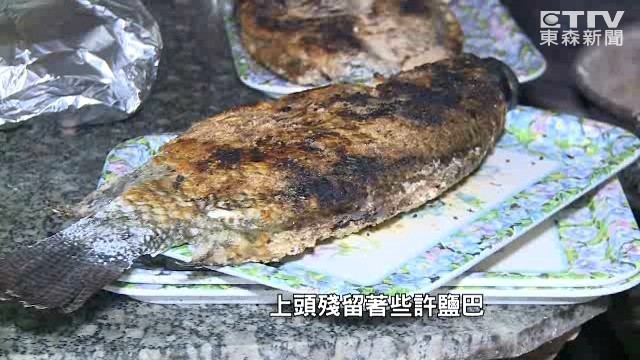 老闆忙到連吃飯時間都沒有,一邊要把魚放上架烤,一邊調整炭火控制溫度,只見整條台灣鯛被烤成焦黃色澤,上頭還殘留著些許鹽巴,架子俐落一翻,美味烤魚上桌。魚身被烤的酥酥脆脆,用筷子劃開,熱騰騰直冒煙,肉質看起來鮮嫩可口,再沾上一點胡椒鹽提味,客人全都吃得很滿意。