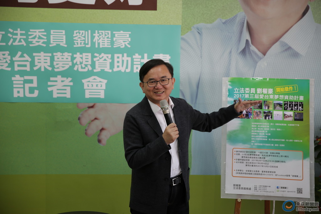 立法委員劉櫂豪愛台東夢想資助計畫今年邁入第三屆,為鼓勵年輕人勇於實現夢想,提供30萬元圓夢獎金,供設籍台東縣的青年朋友,提夢想計畫,把想法實踐出來。