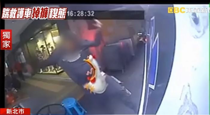 令人傻眼的還不只一樁,消防隊員4日結束勤務後,發現車體上留下黑黑腳印,檢視監視器畫面,才發現新店1名男子從騎樓走出來時,疑似不滿救護車擋住巷口,竟當場狠踹救護車,甚至意外露鳥,讓警消既生氣又無奈。