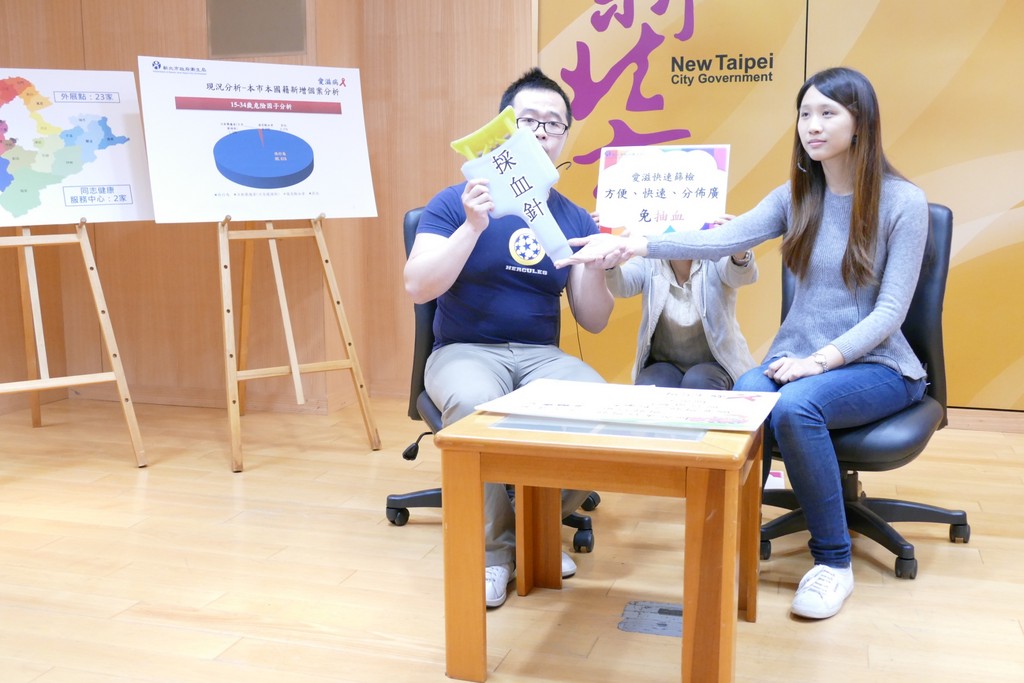 許玉芬指出,新北衛生局兼顧個人隱私及可近性,結合29區衛生所、合約醫療院所與檢驗所及健身場域等,提供超過55個免費的匿名愛滋篩檢諮詢服務,另為縮減等待結果的時間,也有指尖採血的快速篩檢服務,15至20分鐘即可得到結果。