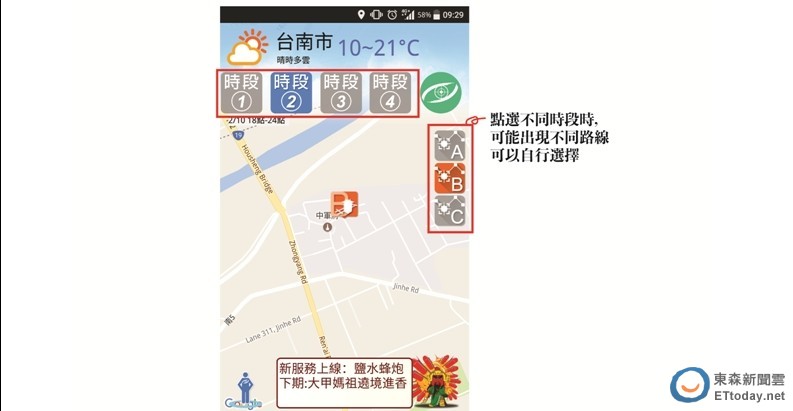 ▲台南市民政局首創與中華電信合作,建置全國第一個「台南鹽水蜂炮即時衛星定位服務網」及「鹽水蜂炮」APP。(圖/記者林悅翻攝)