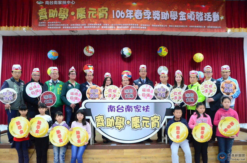 南台南家扶中心於10日上午,在中西區西賢里活動中心舉辦「齊助學‧慶元宵」106年春季獎助學金頒發活動,總計頒發600萬元,共計協助580位學子受惠,讓經濟弱勢學子得以繼續求學之路。