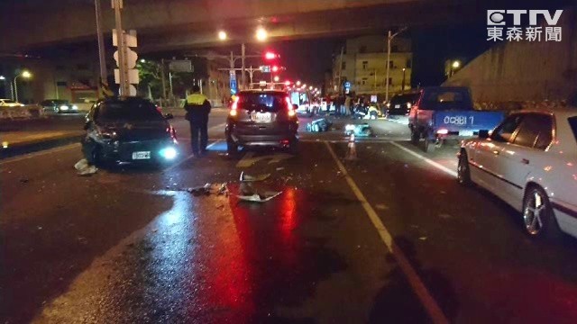 ▲酒駕通緝犯又酒駕!撞翻2汽車又波及2機車。(圖/東森新聞/下同)