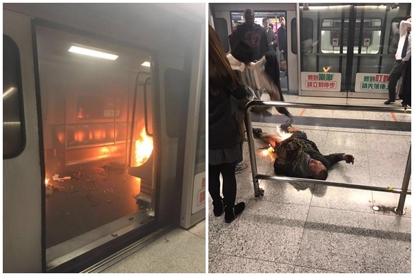香港一輛由金鐘開往荃灣的地鐵列車,10日晚間7時15分許抵達九龍尖沙咀站時,車廂突然起火燃燒,濃煙瀰漫月台,不少人驚慌逃命。當時車廂上有乘客不停拉扯「緊急紅色手掣」,其他人則強摀著臉,忍受嗆鼻味。甚至有男乘客下半身著火,在月台上翻滾哀號,整件褲子都燒光,傷口脫皮滲出血來。