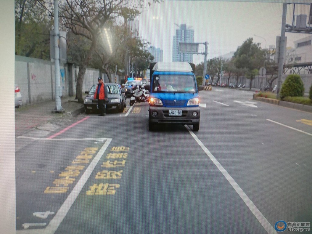 林姓員警是在昨日下午5時出勤,騎乘警用重機車經新店復興路往木柵方向騎士,林姓小貨車駕駛也是同方向行駛,但林男卻是先打左邊方向燈,但卻未左行,隨後他再立即變換為右轉方向燈且立往右偏,林員為免直接撞上,只好跟著右偏,但卻因沒有迴旋空間,只好A到放在停車格內王姓駕駛的自小客車,成了夾心餅干。整個過程則都被後方車輛行車記錄器拍下並PO上網。