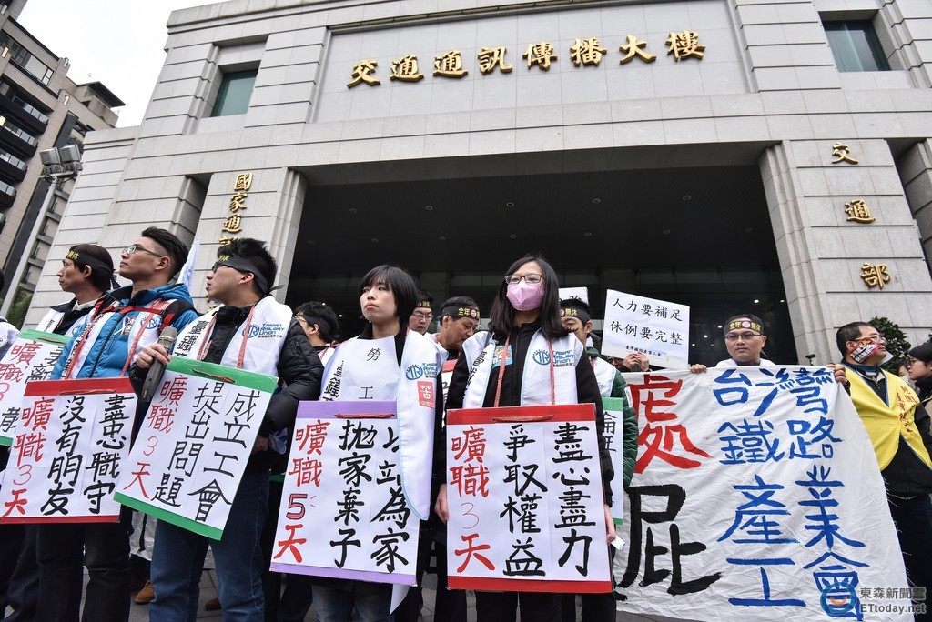 ▲台鐵產業工會交通部前遊行陳抗。(圖/記者李毓康攝)