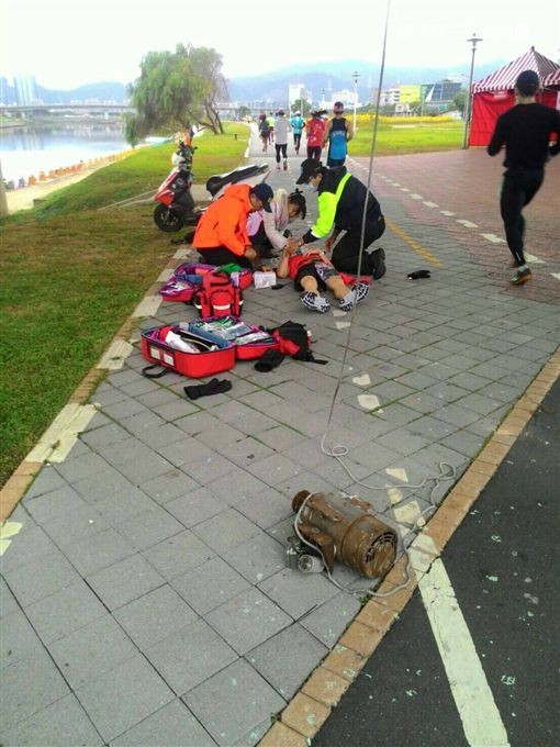 該傷者為40歲的陳姓男子,參加馬拉松路跑活動行經麥帥二橋時,被一顆抽水馬達從天而降擊中頭部,男子當場頭破血流倒地,而發出的巨大聲響更讓現場的其他路跑跑者嚇一大跳,直呼「這顆馬達近10公斤重」,幸好男子送醫後頭頂縫12針、下巴4針,意識清醒,留院觀察但沒有大礙。