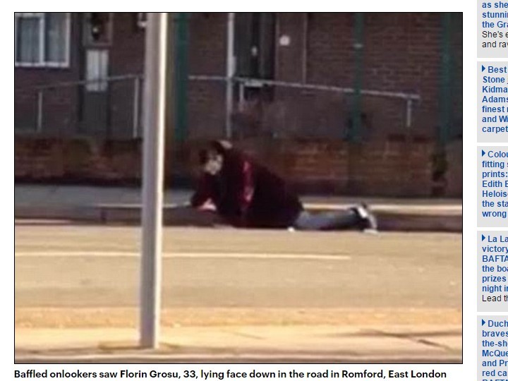 根據《每日郵報》(Daily Mail)報導,警方逮捕這名男子葛蘇洛(Florin Grosu)。他被人目擊在4日上午11時左右,獨自一人走倫敦東郊的羅姆福德(Romford)一處路口,隨後他便開始環顧四周狀況,隨後竟然做出讓人意想不到的事情。