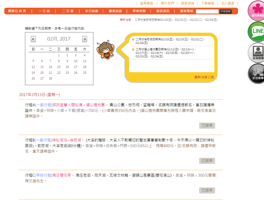 ▲蝶戀花官網列出的行程,團費都相當便宜。(圖/翻攝自蝶戀花官網)