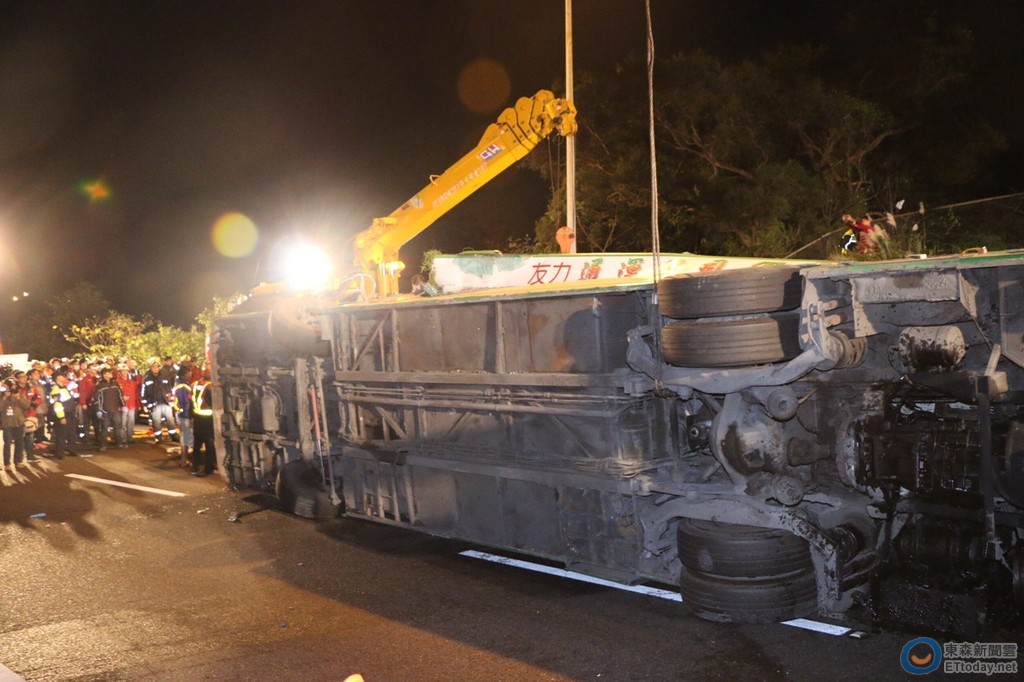 ▲蝶戀花旅行社賞櫻團13日晚間21時12分時,於國道5號接國道3號翻覆,釀成32死。(圖/記者柳名耕攝,下同)