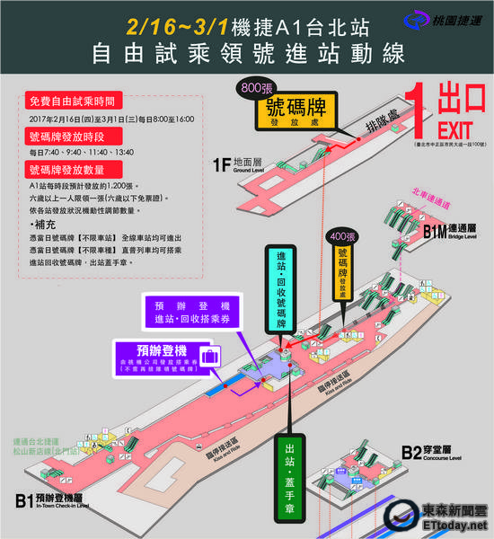 ▲機捷2/16-3/1日自由試乘,日發2萬號碼牌,可憑手戳章再自由進站。(圖/桃捷公司提供)