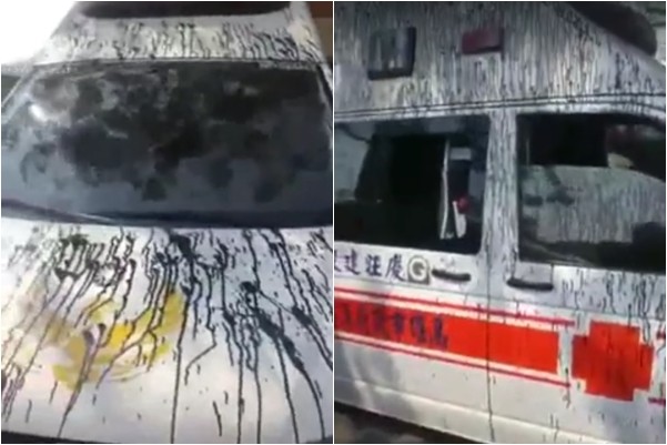下午1時許左右,消防分隊接獲呂男來電表示,自己拿柏油潑在救護車上,當時隊員還覺得莫名其妙,沒想到外出查看,竟發現救護車真的被潑,白色的車身、車頂全都淋滿柏油。待呂男二度來電時,分隊同仁問出其資料及聯絡方式後立刻報警處理。