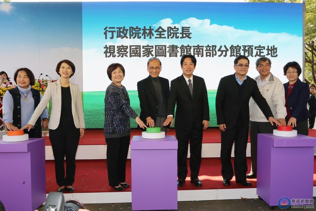 行政院長林全14日南下視察國圖南館預定地,林全院長與台南市長賴清德、行政院秘書長陳美伶、教育部政務次長蔡清華及國家圖書館館長曾淑賢等人共同出席啟動儀式,期能為南台灣打造一座符合國際趨勢並具親和力的國家級公共圖書館。