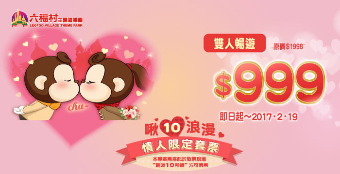 昨(14)日是西洋情人節,許多商家看準時機,趁勢推出好吃、好玩的組合行程就是想應景賺一波幸福財!有網友發現,六福村遊樂園推出情人節套票方案,只要兩人當場接吻10秒鐘,就可享受票價買一送一優待,雖人情人節已過,但活動會一路辦到19日!