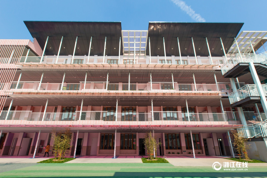 據《杭州網》報導,副校長柳鵑表示不同背景牆顏色代表不同年級,有的是粉色有的是藍色,以此把學校區域進行劃分;女生洗手間以充滿少女心的粉紫為主題色,男生洗手間則用馬賽克等材料拼接成醒目的綠色,視覺上醒目統一,色彩柔和不刺眼。