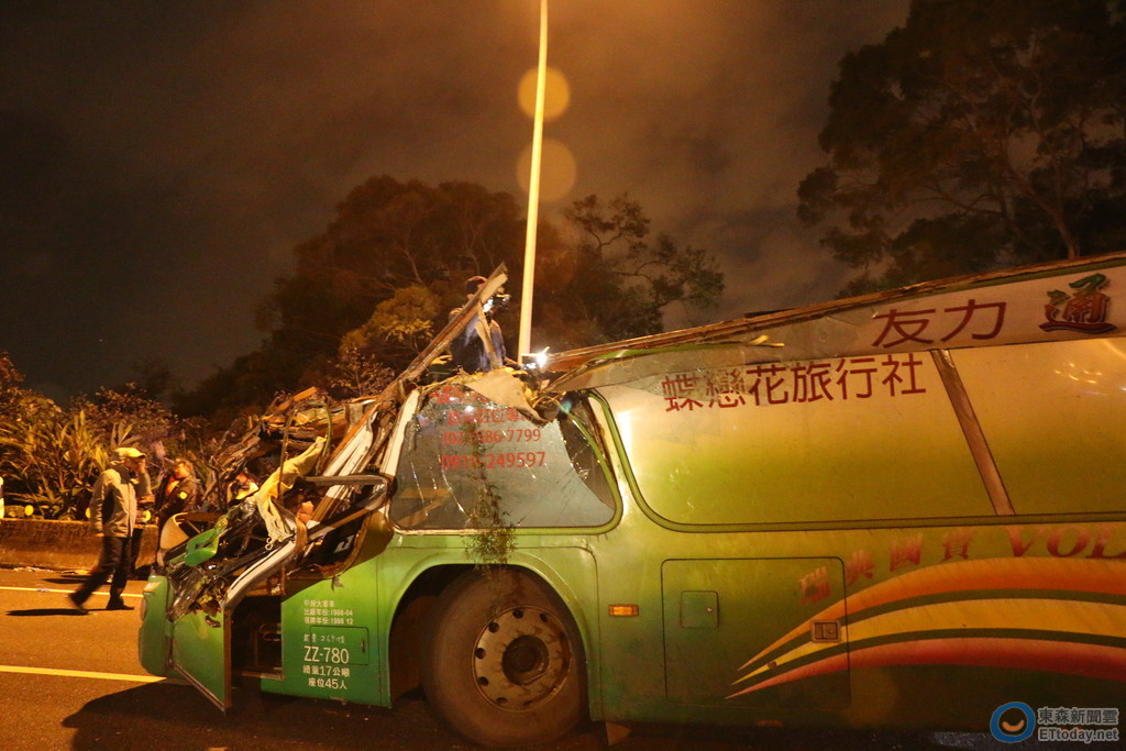 ▲國道遊覽車翻車。(圖/記者柳名耕攝)