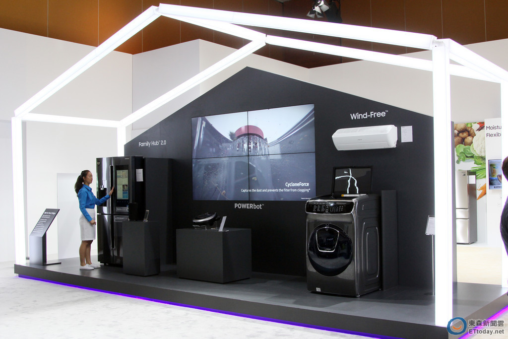 不僅QLED電視,三星電子在 IoT 領域,投注了相當大的資源,部署了重要的物聯網產品包括電視、家用電視、家用電器產品與服務,在這當中,最重要的產品莫過於搭載Family Hub 2.0 的智慧冰箱,除了同樣導入雙循環冷藏系統,主要是在冰箱門上內建 21.5 吋的觸控螢幕,搭配冰箱內建的攝影鏡頭、揚聲器、WiFi 聯網等裝置,讓冰箱成為可以透過聯網、互動的一項個性化家電。