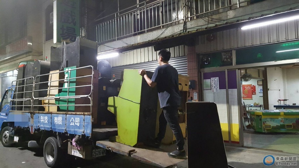 ▲警方查扣遊戲機33檯,並以大貨車載運。(圖/記者林悅翻攝)