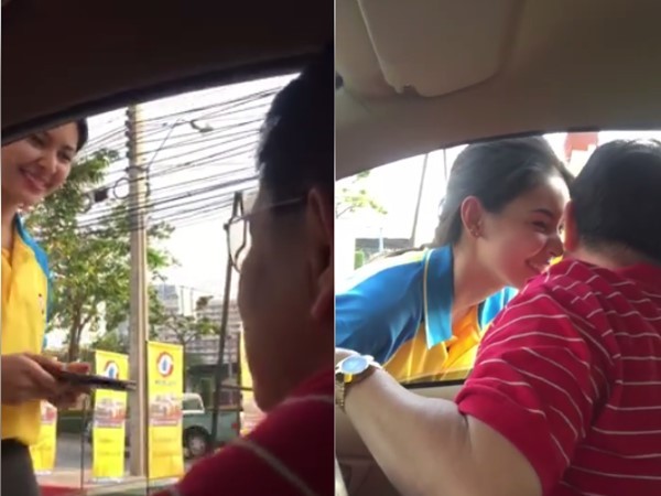 最近在泰國網友之間,流傳了一段影片,引發民眾熱烈討論。據悉主角是一名正妹,她是加油站的員工,原來是這間加油站推出了一項特別服務,只要顧客加滿油,就可以獲得這名正妹的香吻一個。但據當地媒體調查,這名女員工已經離職了。