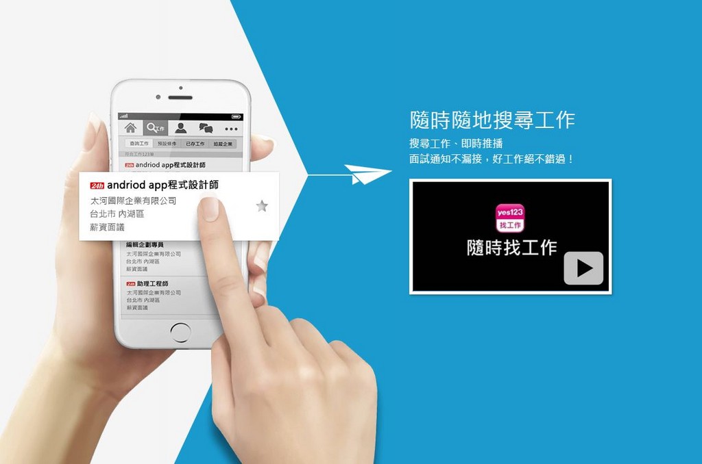 「上班族預估,平均要投76封履歷,才能找到一份新工作!」針對年後轉職潮,求職網站最新調查結果出爐;主計總處的數據也顯示,去年失業期更長達25週!幫助勞工朋友縮短待業時間,提高跳槽效率,yes123求職網推出找工作APP,應徵職缺時,透過簡訊和徵才企業即時聯繫,雙方還可以直接通話與線上面試,不怕履歷表石沉大海!