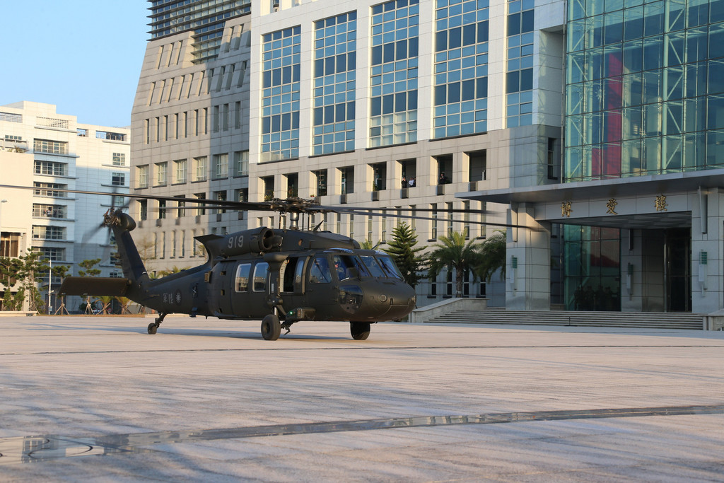 國防部今日上午發布新聞稿表示,國軍為精實戰備任務訓練及緊急應變能力,派遣空軍S-70C型機、陸軍UH-60M型機各一架次,在完整規劃及綿密安全管制編組下,於博愛營區執行試降任務。