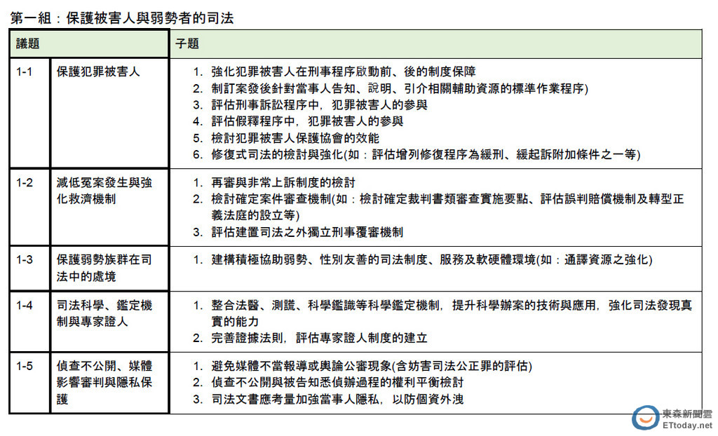 ▲總統府司法改革國是會議議題。(圖/總統府提供,下同)