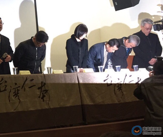 ▲周比蒼(右二)鞠躬道歉。國道翻車事故善後會議。(圖/記者張曼蘋攝,下同)