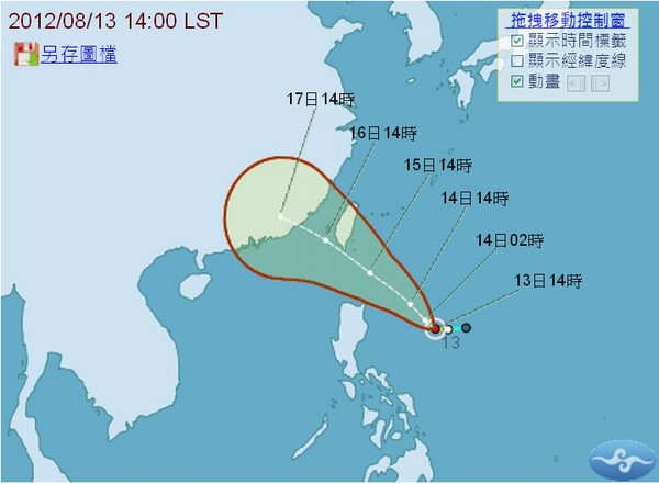目前啟德颱風向西北西轉西北進行,氣象局提醒,14日東部就會有長浪,最快在同日下午針對巴士海峽發佈海上颱風警報。
