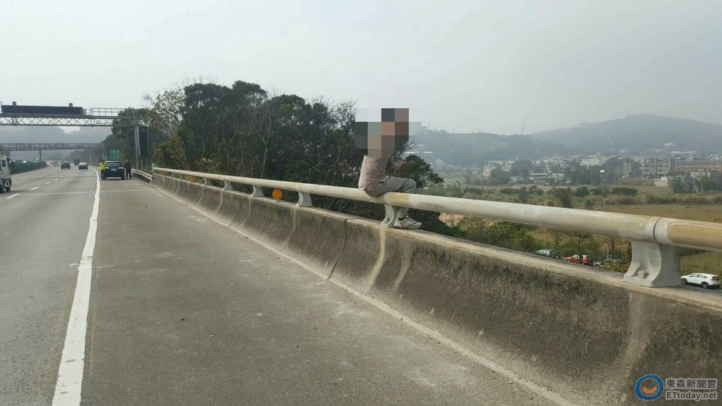 ▲戴男因職災斷臂又患重病,一時想不開爬上北二高欲輕生,幸被巡邏員警及時拉下救回。(圖/記者孫曜樟翻攝)