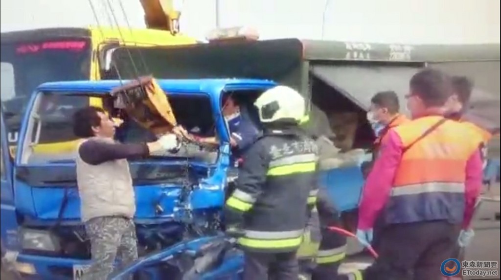 警方調查,鄭姓男子(34歲)今日下午1時許,駕小貨車行至汐五高架南向21.4公里處,在內側車道發生故障拋錨,他先打亮故障燈,尚未下車至後方擺放三角警示標誌,就遭由魏姓男子(29歲)駕駛的小貨車追撞,強大撞擊力造成車體嚴重扭曲變形,2人都受困在車內。