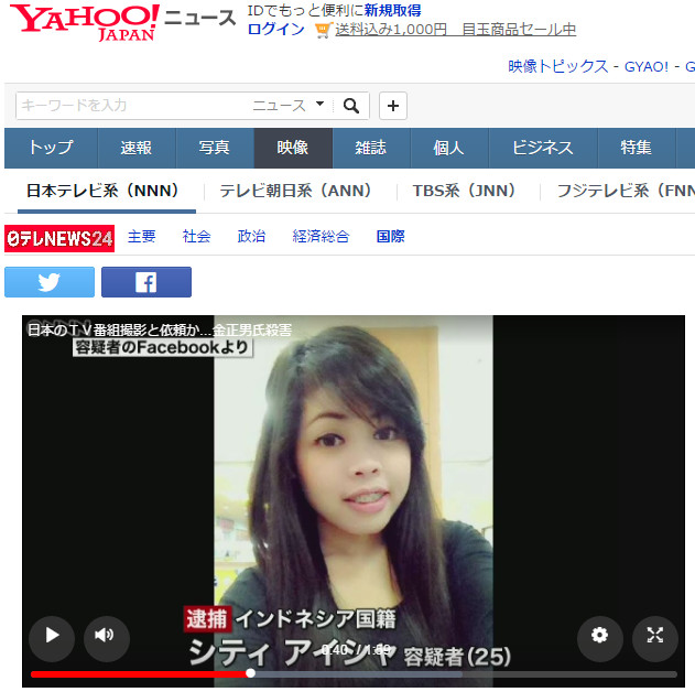 ▲刺殺金正男遭逮捕的印尼籍女子。(圖/翻攝自yahoo Japan網站)