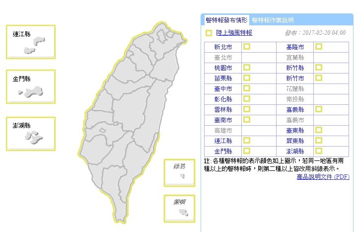 受到強烈東北季風影響,中央氣象局今天(20日)清晨對全台16縣市發布「陸上強風特報」;另外,南方雲系今北移,台灣各地及澎湖、金門、馬祖有局部短暫雨。