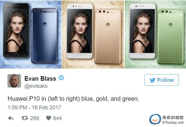 華為這兩天接連在官方 Twitter 爆料,他們將於 MWC 2017 記者會上,宣布與 Ricostru、Pantone、VOGUE等公司合作合作,重新定義消費市場上的用色趨勢,並且直接預告新一代旗艦機華為P10的顏色將將會有綠色當作產品新色,隨後Twitter 爆料客Evan Blass也發出華為P10的金色、藍色、綠色等三機諜照,看來似乎讓人期待。