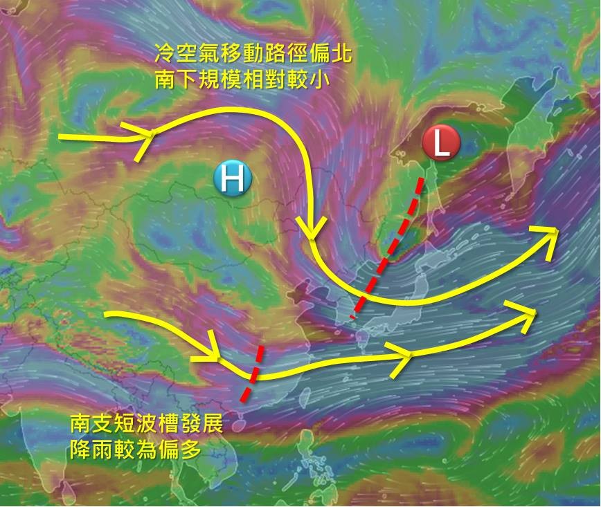 吳德榮指出,週四鋒面及大陸冷氣團南下,氣溫驟降加上降雨,天氣變化大,越晚越冷。週五到下週一受冷氣團影響,日夜氣溫偏低,整天濕冷;中部以北、東部降雨明顯,南部也有局部短暫雨的機率。下週二冷空氣減弱,但北部仍偏濕冷。