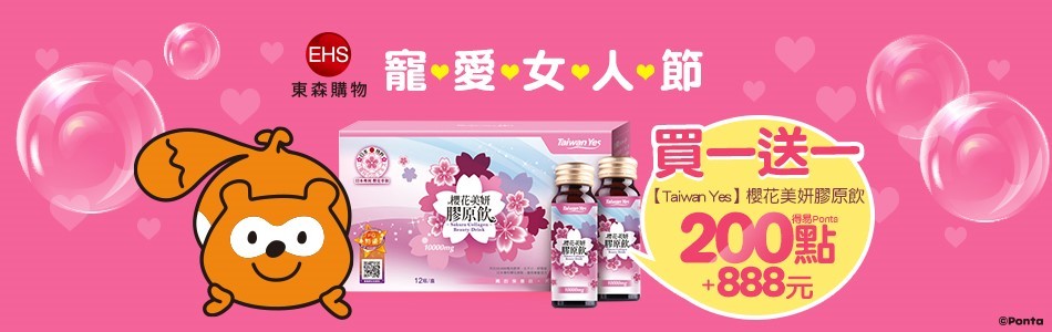 ▲用得易Ponta200點加888元在東森購物ETmall 換購Taiwan Yes櫻花美妍膠原飲,買1送1~輕鬆喝出美麗。