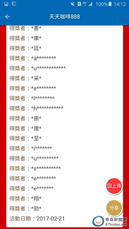 快快查看是不是自己中獎,中獎者請密切注意信箱回覆相關得獎訊息。沒中獎的雲友也別氣餒,「2017小ET送紅包」活動還有一周!一百份Häagen-Dazs冰淇淋迷你杯在等著你們呢!馬上下載東森新聞雲APP來搜刮大紅包啦!