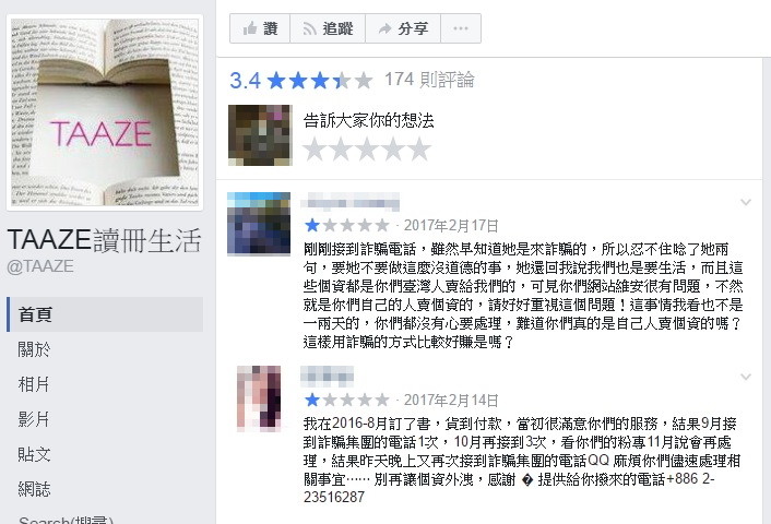 ▲不少人喜歡在網路上買書,但近期有多數網友表示接到冒名讀冊客服人員的詐騙電話,除了感到困擾,更對讀冊網站的資安維護產生疑慮。(圖/翻攝自TAAZE讀冊生活臉書)