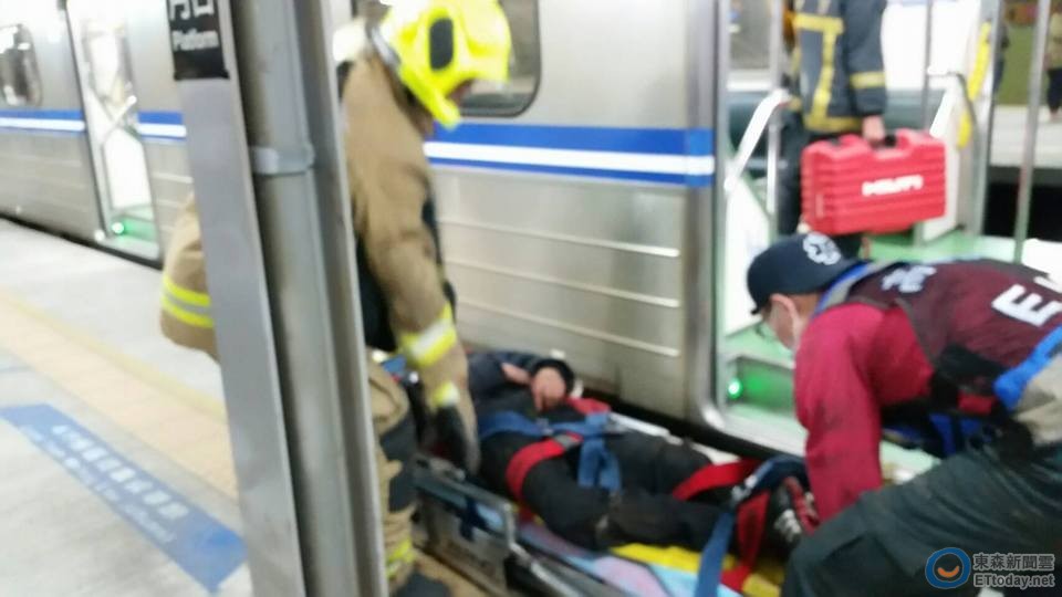 ▼警消人員耗時20分鐘才救出受困的陳男,雖然他意識清楚,但仍有生命危險。(圖/台鐵提供)