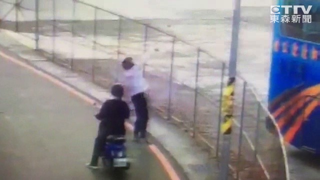監視畫面可見,2名男子共乘機車到高中圍牆外,後座的男子下車,跳來跳去疑似在暖身。接著2人拿出爆竹,擋著風點燃,趁沒人車經過時,使出全力往校園裡丟,然後騎上車落跑。