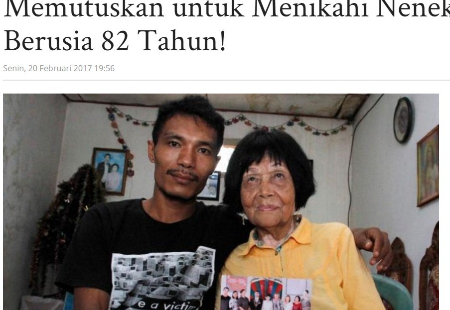 印尼28歲修車工人蘇菲揚(Sofian Loho Dandel)因為一通撥錯的電話,意外與82歲的阿婆瑪莎(Martha Potu)搭上線,兩人雖然彼此不認識卻熱線了1小時,從此陷入愛河時常戶打電話聊天。雖然見了面,蘇菲揚坦承有被對方的年紀嚇到,但最後真愛仍然克服阻礙,兩人於上周舉行了婚禮。