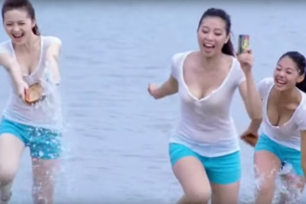 ▲「椰樹集團」找來一群衣著清涼的美眉拍攝廣告,宣傳「喝椰奶,變大奶」。(圖/翻攝自大陸網站)